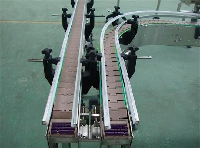 流水(shuǐ)線的鏈板(bǎn)厚度,一般要考慮因(yīn)素:每塊鏈板必須能承(chéng)受住相應物料的總重量(liàng),並且撓度要限製到最(zuì)小,這樣才能防止鏈板在搭(dā)接處的彎曲;裝載時(shí)下(xià)落的塊狀物(wù)料衝擊(jī)會引起鏈板變形;被輸送物料的磨琢性;腐蝕性及耐化學反應;預期(qī)的使用壽命;經濟費用(yòng)(造價)的(de)限製。